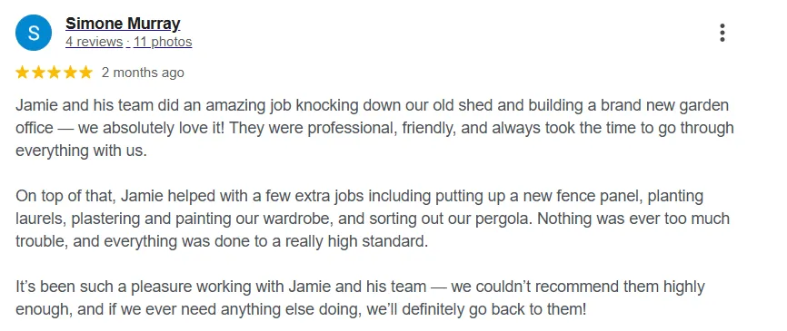 Our online reviews speak for themselves, and with a friendly, down-to-earth team and pricing to suit most budgets, we make the whole process easy from start to finish.